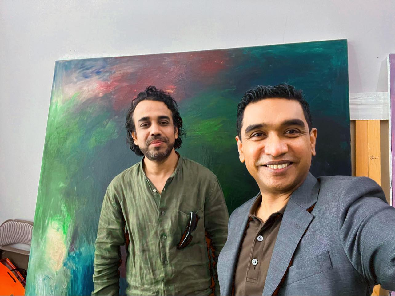 Md Tokon's lives and works in the United States, where he has attended the prestigious Art Students League of New York – an institution which counts the likes of Mark Rothko and Cy Twombly in its alumni. His work has also deep roots in Bangladesh. To the artist's own admission, the palette he uses is often a tribute to the incredible tonalities of the motherland. We could add that the poesy of his compositions hints at the long tradition of abstract painting in the country, and specifically at the work of the late Mohammad Kibria. "Light, Dark, Space" offers a dialogue between East and West, between the Modern and the Contemporary. It is an honor for Bengal Art Lounge to propose this highly meaningful exhibition to the public.